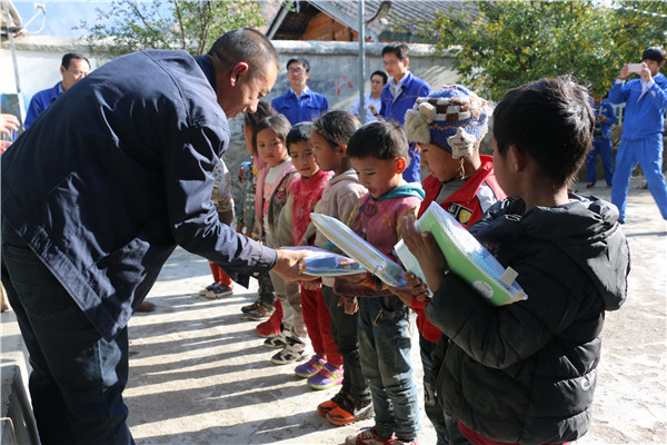 2016年12月2日,云南公司阿海第五黨支部向當地學生獻愛心。