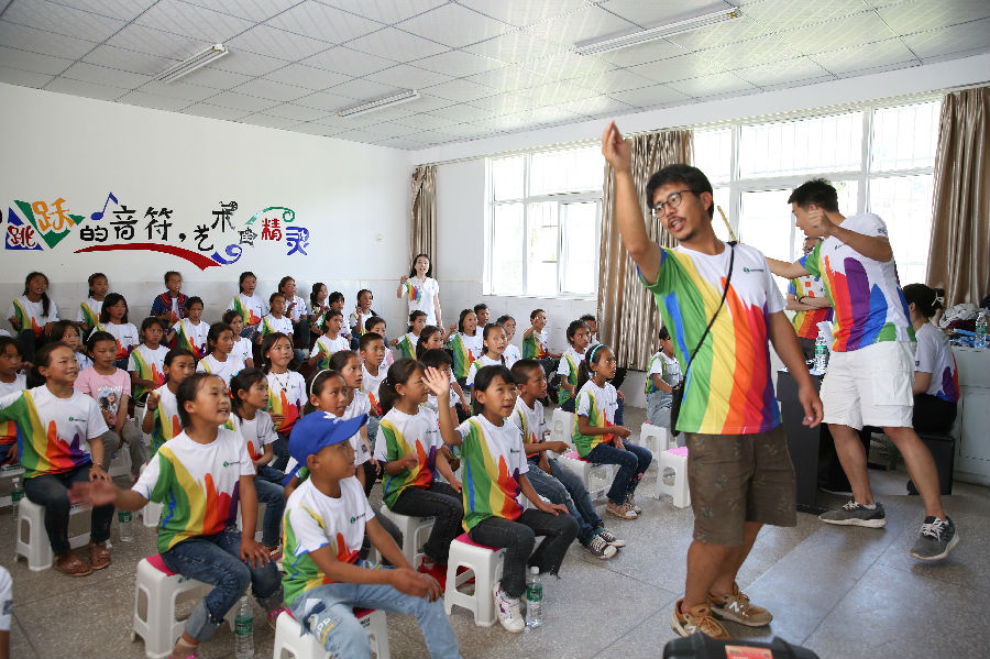 2020年7月,“中廣核”攜手松禾基金會共同成立的“白鷺彩虹涼山彝族童聲合唱團”正式開班。作為合唱團特邀音樂專家顧問,我國著名彝族音樂人莫西子詩來到四川省涼山州普格縣特爾果中心校,為59名彝族孩子帶來一堂別具特色的彝族音樂大餐。