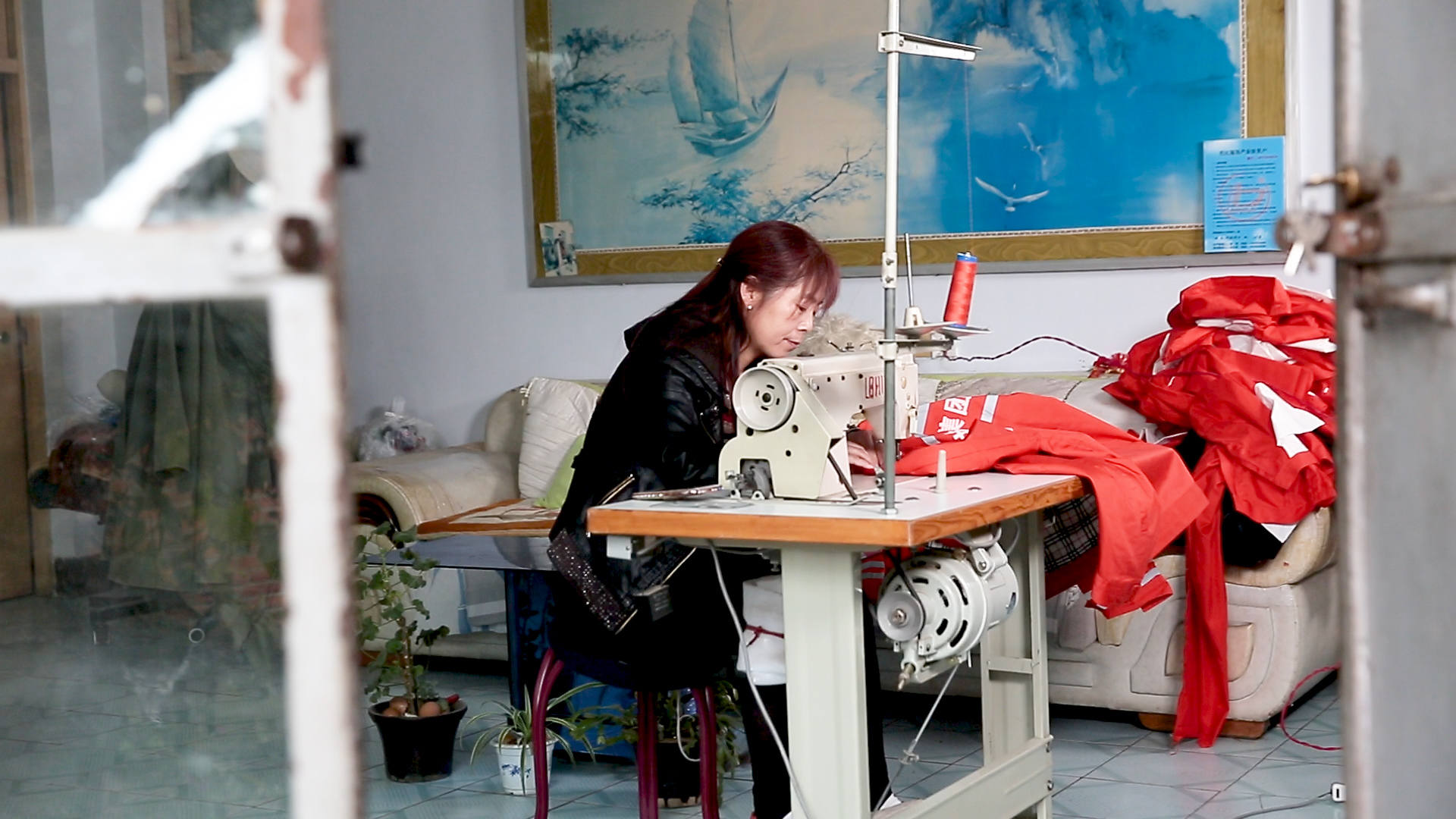 中國鐵建所屬中鐵十四局在尚義扶貧過程中,創新扶貧方式,建立“家庭微車間”,使縫紉工足不出戶就能工作掙錢。