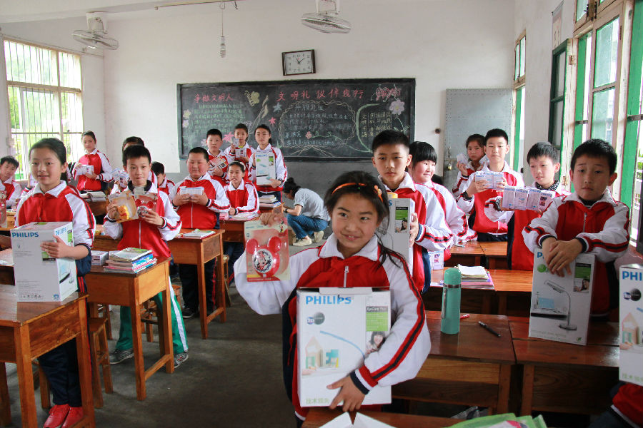 中檢集團為沾坑村小學送去學習用品及書籍。