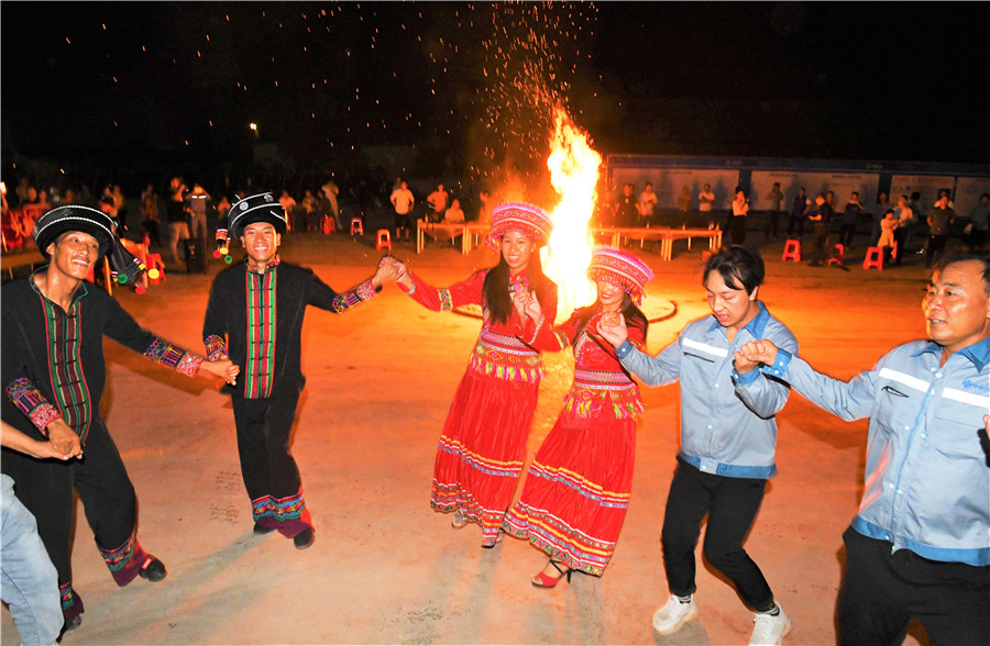 在中交三航局株洲清水塘PPP工程項目集配中心內,20多名來自中交集團對口幫扶的云南怒江傈僳族自治州的傈僳族同胞身披節日盛裝,和項目同事一起聚餐燒烤,唱歌跳舞,歡度他們的傳統節日——火把節。
