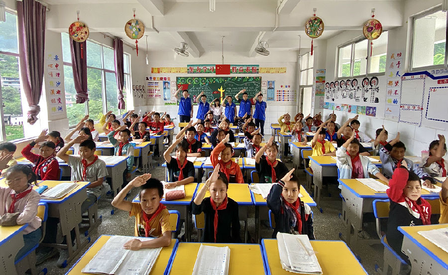 中交集團所屬中咨集團藍馬甲志愿者們和亞谷完小學孩子們的課后合影。