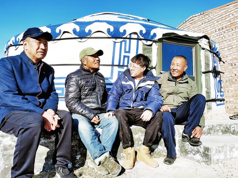 趙哲(右二)和牧民群眾打成一片