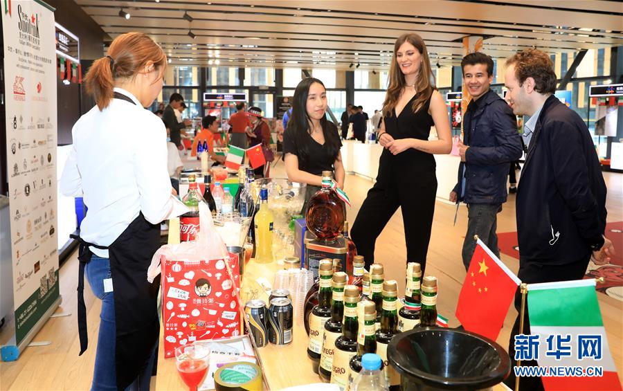 2020年5月8日,虹橋品匯國別文化節云游意大利主題展在上海虹橋進口商品展示交易中心舉行,嘉賓在一家意大利酒類企業的展臺前駐足觀看。
