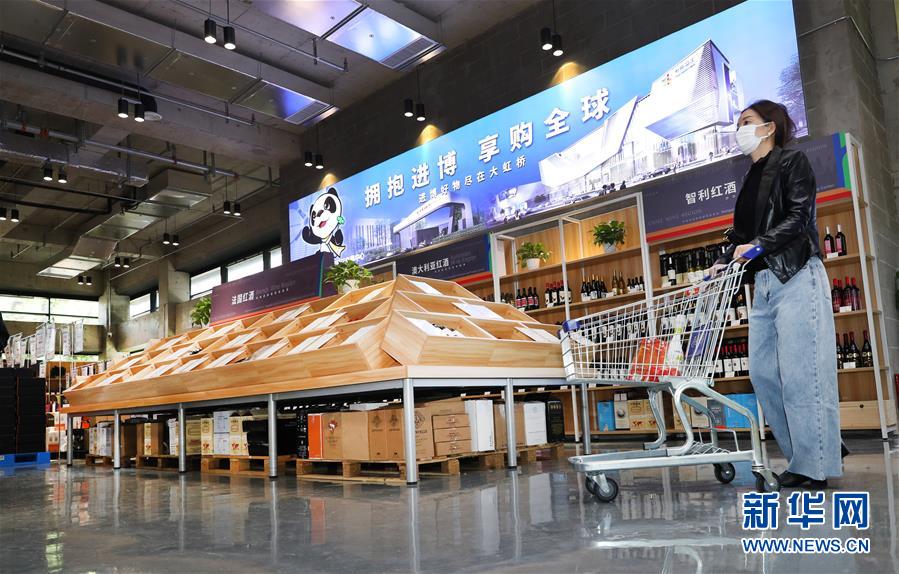 2020年4月25日,“擁抱進博·享購全球”虹橋品匯食品健康館在上海虹橋進口商品展示交易中心開業,顧客在虹橋品匯食品健康館購物。