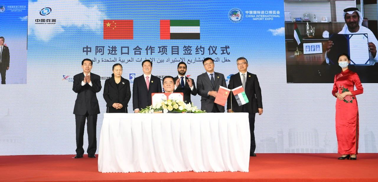 11月4日,舉辦阿(a)(a)(a)拉(la)伯聯合(he)酋(qiu)長國(guo)和中(zhong)國(guo)兵器(qi)工業集(ji)團進(jin)口(kou)專場(chang)簽(qian)約活動,與阿(a)(a)(a)聯酋(qiu)合(he)作(zuo)伙(huo)伴簽(qian)署(shu)三項重(zhong)大一攬子(zi)進(jin)口(kou)貿易合(he)同,涉及工業原料采(cai)購、精細(xi)化工品采(cai)購及礦(kuang)產(chan)(chan)品采(cai)購,有力(li)拓展集(ji)團公(gong)司與阿(a)(a)(a)聯酋(qiu)企業在石油、礦(kuang)產(chan)(chan)、工業原材料等領(ling)域的業務深度(du)(du)和合(he)作(zuo)廣度(du)(du),為(wei)鞏固中(zhong)阿(a)(a)(a)友(you)誼作(zuo)出新貢(gong)獻(xian)。
