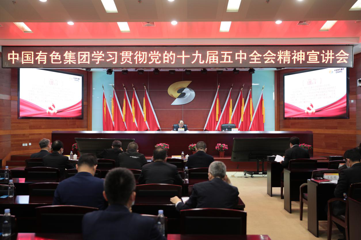 11月19日,中(zhong)(zhong)(zhong)國有(you)色集(ji)團召開黨的(de)十(shi)九(jiu)屆五(wu)中(zhong)(zhong)(zhong)全(quan)會(hui)精(jing)神專(zhuan)題視頻宣(xuan)講(jiang)會(hui),推動黨的(de)十(shi)九(jiu)屆五(wu)中(zhong)(zhong)(zhong)全(quan)會(hui)精(jing)神進(jin)一(yi)步(bu)深入人心(xin)、直(zhi)達基層。中(zhong)(zhong)(zhong)國有(you)色集(ji)團主要(yao)負責同(tong)志(zhi)作(zuo)專(zhuan)題宣(xuan)講(jiang),全(quan)面宣(xuan)講(jiang)黨的(de)十(shi)九(jiu)屆五(wu)中(zhong)(zhong)(zhong)全(quan)會(hui)精(jing)神的(de)核心(xin)要(yao)義,“十(shi)四五(wu)”時期我國發(fa)(fa)展(zhan)(zhan)的(de)指導(dao)方針、主要(yao)目標、重(zhong)點任務(wu)和(he)2035年(nian)遠景(jing)目標,深入結合集(ji)團公(gong)司改革發(fa)(fa)展(zhan)(zhan)黨建(jian)工作(zuo)實際,強調集(ji)團公(gong)司各級(ji)黨委、黨組(zu)織要(yao)切(qie)實把(ba)思想和(he)行動統(tong)一(yi)到習近平(ping)總書記重(zhong)要(yao)講(jiang)話精(jing)神和(he)黨的(de)十(shi)九(jiu)屆五(wu)中(zhong)(zhong)(zhong)全(quan)會(hui)重(zhong)大決策部署上來,科學把(ba)握新發(fa)(fa)展(zhan)(zhan)階段(duan)、深入貫徹新發(fa)(fa)展(zhan)(zhan)理(li)念、加快(kuai)構建(jian)新發(fa)(fa)展(zhan)(zhan)格局,統(tong)籌發(fa)(fa)展(zhan)(zhan)和(he)安全(quan),聚(ju)焦主責主業,強化科技自(zi)立(li)自(zi)強,加快(kuai)技術(shu)進(jin)步(bu),更好(hao)推進(jin)企業改革發(fa)(fa)展(zhan)(zhan)和(he)黨建(jian)工作(zuo),為實現高質量發(fa)(fa)展(zhan)(zhan)做出(chu)更大貢獻。