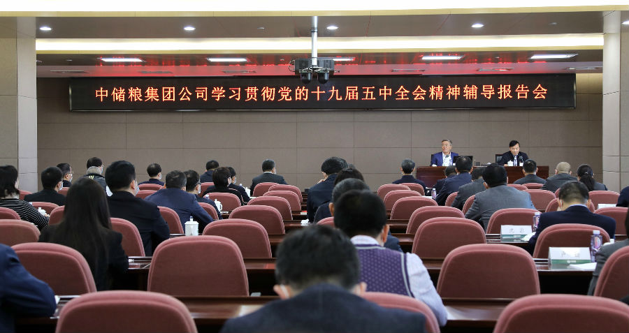 為(wei)深入(ru)學習貫徹黨的十(shi)九(jiu)(jiu)屆(jie)五中(zhong)全(quan)會(hui)(hui)精(jing)(jing)(jing)神(shen),加深干部員(yuan)工對(dui)全(quan)會(hui)(hui)精(jing)(jing)(jing)神(shen)的理解把握,12月(yue)14日,中(zhong)儲糧集(ji)團公(gong)(gong)(gong)司(si)舉辦學習貫徹黨的十(shi)九(jiu)(jiu)屆(jie)五中(zhong)全(quan)會(hui)(hui)精(jing)(jing)(jing)神(shen)輔(fu)導(dao)報(bao)告(gao)會(hui)(hui),邀請中(zhong)央宣講團成員(yuan),十(shi)三屆(jie)全(quan)國政(zheng)協(xie)常委(wei)、政(zheng)協(xie)經濟委(wei)員(yuan)會(hui)(hui)副主任楊偉民(min)為(wei)全(quan)系統作黨的十(shi)九(jiu)(jiu)屆(jie)五中(zhong)全(quan)會(hui)(hui)精(jing)(jing)(jing)神(shen)宣講報(bao)告(gao)。集(ji)團公(gong)(gong)(gong)司(si)黨組主要(yao)負(fu)責同志(zhi)主持輔(fu)導(dao)報(bao)告(gao)會(hui)(hui),集(ji)團公(gong)(gong)(gong)司(si)黨組班子(zi)成員(yuan)出席報(bao)告(gao)會(hui)(hui)。輔(fu)導(dao)報(bao)告(gao)會(hui)(hui)采取視頻會(hui)(hui)議方式,集(ji)團公(gong)(gong)(gong)司(si)全(quan)體(ti)黨員(yuan)、干部、員(yuan)工分別(bie)在(zai)主會(hui)(hui)場和(he)分會(hui)(hui)場參加學習。