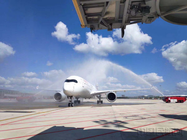 從主基地上海浦東國際機場衛星廳首架起飛的東航A350-900客機