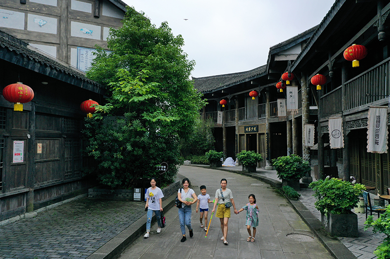 游客在重慶市榮昌區萬靈古鎮游覽(無人機照片,2020年6月26日攝)。