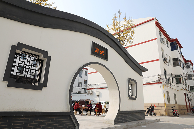 居民在河南省焦作市溫縣一處改造后的小區里休閑(2020年11月15日攝)。