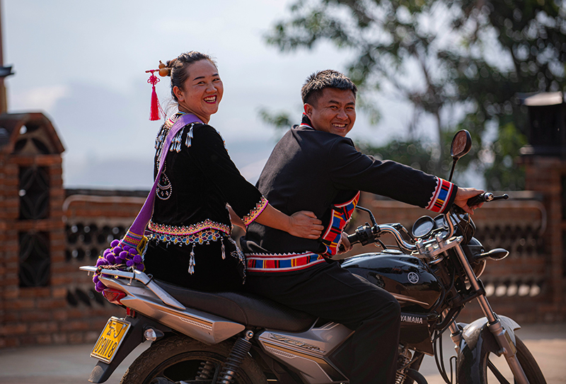 排練結束后,云南省普洱市瀾滄拉祜族自治縣東回鎮班利村“擺舞隊”隊員郭玉蘭(左)準備回家(2021年3月4日攝)。“擺舞隊”的隊員們農忙時在田間勞作,農閑時為游客表演,也經常將精彩的演出和幸福的生活場景上傳到網絡平臺,向大家展現偏遠山村極具特色的鄉村振興新圖景。
