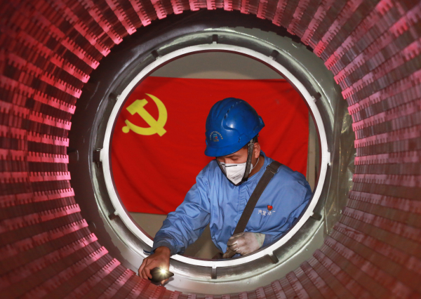 為(wei)保障項目(mu)進(jin)度(du),哈電集團電機公司汽發(fa)分(fen)廠(chang)基層(ceng)黨(dang)支部成(cheng)立黨(dang)員攻關(guan)小組,圖為(wei)攻關(guan)小組成(cheng)員在對小空冷機組進(jin)行出(chu)廠(chang)試驗檢查。