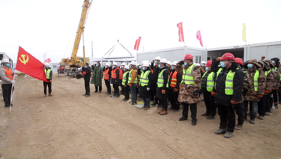 “我(wo)宣誓,我(wo)堅決做到(dao)一切行(xing)動聽(ting)黨(dang)指揮,召之(zhi)能(neng)來,來之(zhi)能(neng)戰……”在(zai)連續奮戰3天之(zhi)后(hou),2021年(nian)1月19日,在(zai)石家莊(zhuang)集(ji)中(zhong)隔離點首批(pi)1008套集(ji)裝箱房屋交付后(hou),中(zhong)鐵十四局二公(gong)司臨(lin)時黨(dang)支部70多(duo)名(ming)參與了隔離點建(jian)設(she)的(de)黨(dang)員(yuan),面對鮮(xian)紅(hong)的(de)黨(dang)旗,莊(zhuang)嚴宣誓,并現場進行(xing)了“黨(dang)員(yuan)先鋒崗(gang)”“青年(nian)突(tu)擊隊”授旗,他們用實際行(xing)動帶領全體300名(ming)員(yuan)工(gong),向最(zui)后(hou)的(de)施(shi)工(gong)任(ren)務發起了沖刺。(高會強(qiang) 攝)