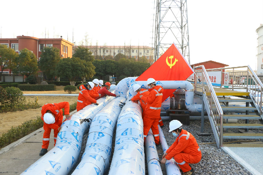 圖為2021年2月1日,國家管網集團東部儲運公司魏崗站組織在站黨員對承包責任區設備設施進行檢查保養,通過“黨員行動日”定期開展活動,讓黨員“動”起來,把標桿“立”起來。