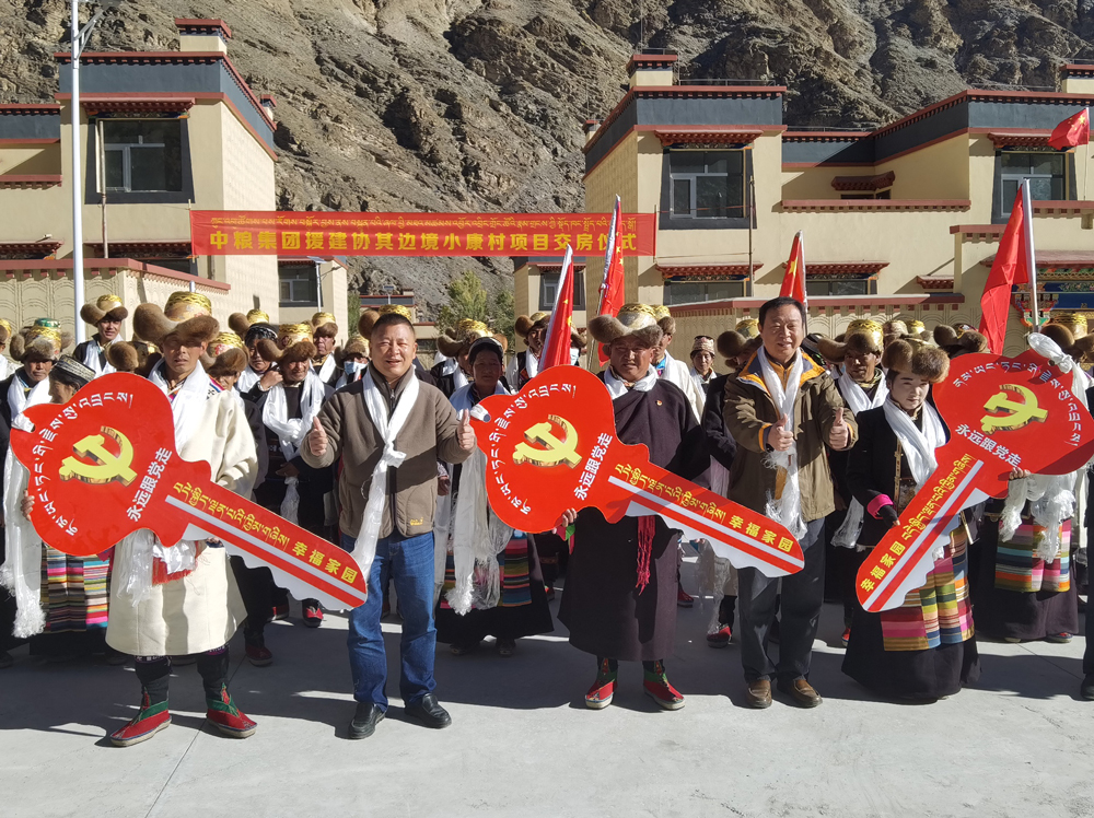 中糧集團撥付專項資金建設的邊境小康村在西藏洛扎建成,藏族群眾載歌載舞遷入新居,感謝黨的好政策。