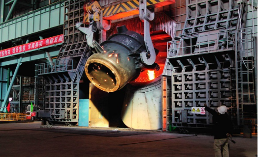 朝陽鋼鐵煉鋼廠轉爐兌鐵作業