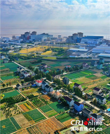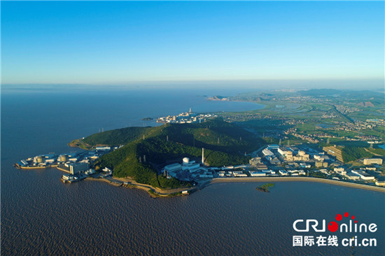 秦山核基地鳥瞰。9臺機組年發電量超500億千瓦時。(供圖)
