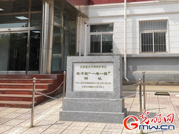 原子能院“一堆一器”舊址全國重點文物保護單位標志碑。