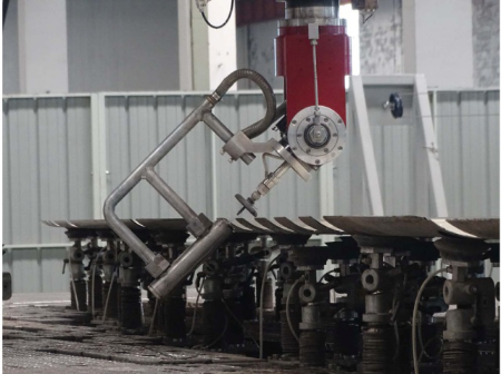 通過500MPa超高壓發生設備、帶廢液回收“C”型杯五軸聯動水切割頭系統、大型水切割平臺及浮動點陣柔性托架等方面的技術突破,研制出具有自主知識產權的大型曲面構件五軸聯動超高壓精密水切割裝備,主機壓力500MPa、流量6L/min、配套功率75kW,切割工作行程15m×5m,具備大型曲面構件的柔性裝夾功能,配置加工、在線測量及誤差補償一體化控制系統,10m以上規格的飛機蒙皮結構件全尺寸切割誤差≤0.5mm,裝備技術填補國內空白,技術參數指標達到國際先進水平。