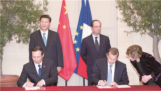 人民網巴黎3月(yue)26日電 26日下(xia)午(wu),空客(ke)直(zhi)(zhi)(zhi)升(sheng)機(ji)和中航工業直(zhi)(zhi)(zhi)升(sheng)機(ji)公司(si)在(zai)(zai)巴黎愛(ai)麗舍(she)宮簽署(shu)了共同生產1000架新一代(dai)EC175/AC352型直(zhi)(zhi)(zhi)升(sheng)機(ji)的協議。正在(zai)(zai)法國(guo)訪問的中國(guo)國(guo)家主席習近平和法國(guo)總統弗朗(lang)索瓦?奧朗(lang)德見證了協議的簽署(shu)。該協議加強(qiang)了空客(ke)直(zhi)(zhi)(zhi)升(sheng)機(ji)和中航工業在(zai)(zai)共同研發的EC175/AC352項目上(shang)的工業合作。
