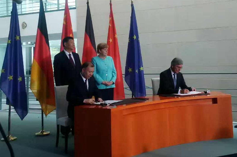 2017年7月5日,習近平、默克爾見證中國航天科工與西門子簽署戰略合作協議