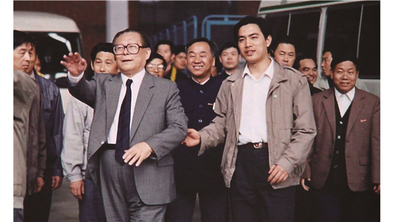 1990q??7日,江泽(chen)(pin)视察中国兵?27厂时在R间听取汇(zhen)?/a>