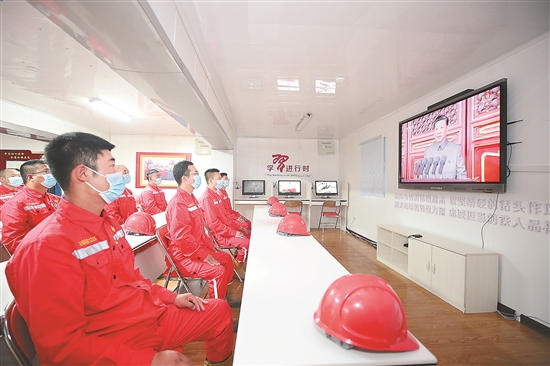 7時20分(fen),遼河油田3000余(yu)名(ming)干(gan)部員(yuan)(yuan)(yuan)工(gong)(gong)齊(qi)聚機關大(da)樓門前(qian)廣(guang)場,唱(chang)(chang)響《唱(chang)(chang)支山(shan)歌給黨聽》,并組織6萬余(yu)名(ming)干(gan)部員(yuan)(yuan)(yuan)工(gong)(gong)通過(guo)(guo)廣(guang)播、電(dian)視(shi)、手機等形式收聽收看(kan)大(da)會(hui)盛況(kuang)。上海(hai)銷售在(zai)機關設(she)立主(zhu)會(hui)場,17家分(fen)公司(si)、直(zhi)管股(gu)權企業、160座加(jia)油站在(zai)安(an)排好生產經(jing)營工(gong)(gong)作的(de)同時,分(fen)別組織集中觀看(kan),共809名(ming)黨員(yuan)(yuan)(yuan)干(gan)部和員(yuan)(yuan)(yuan)工(gong)(gong)收看(kan)了盛會(hui)。在(zai)廣(guang)東石化(hua)(hua)(hua)煉化(hua)(hua)(hua)一體化(hua)(hua)(hua)項目現場,建(jian)設(she)單(dan)位寰球公司(si)的(de)1060名(ming)干(gan)部員(yuan)(yuan)(yuan)工(gong)(gong)利(li)用工(gong)(gong)休(xiu)時間,通過(guo)(guo)手機認真聆聽習近(jin)平(ping)總(zong)書記講話(hua)。在(zai)塔克拉(la)瑪干(gan)沙漠邊緣英買470-H6井(jing)駐守的(de)川慶鉆(zhan)探新疆分(fen)公司(si)70598隊(dui)黨員(yuan)(yuan)(yuan),克服時差早早起(qi)來,通過(guo)(guo)電(dian)視(shi)集體觀看(kan)直(zhi)播。安(an)全環保院QZ管道環境監理項目部員(yuan)(yuan)(yuan)工(gong)(gong)在(zai)海(hai)拔4700多米(mi)的(de)施工(gong)(gong)現場,通過(guo)(guo)電(dian)腦收看(kan)盛況(kuang)。工(gong)(gong)程(cheng)技(ji)術研究院黨員(yuan)(yuan)(yuan)群(qun)眾千余(yu)人分(fen)別在(zai)北京、武漢、荊州(zhou)三地,通過(guo)(guo)學習強(qiang)國、鐵人先鋒APP等平(ping)臺觀看(kan)直(zhi)播。