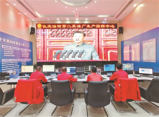 在華北油田采油一廠,無論是廠機關還是火熱的冀中平原生產現場,干部員工紛紛通過電視、網絡、廣播等形式,收聽收看大會直播盛況 丑云霞 王姿 攝