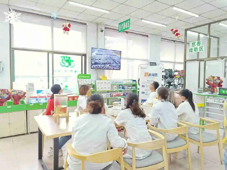 國大藥房臨汾營業廳組織觀看大會直播