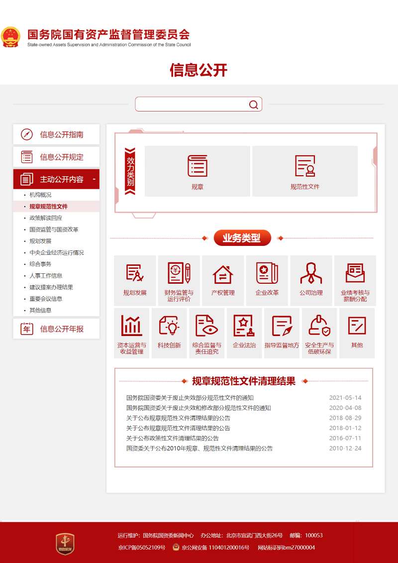 國務院國資委官網“規章規范性文件”欄目改版完成