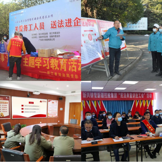 所屬企業通過黨委理論中心組專題學習、法治專題講座、線上法律知識競賽,聯合駐地政府、司法局、普法辦等部門開展送法下基層、“憲法宣傳進企業”等活動,深入落實“我為群眾辦實事”要求,為職工普及法律知識、提供專業化法律服務,進一步增強干部職工法治意識,深化法治新興際華建設。