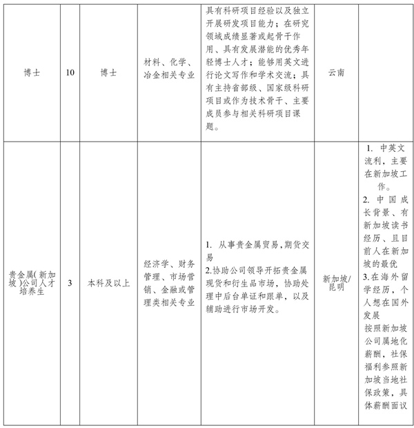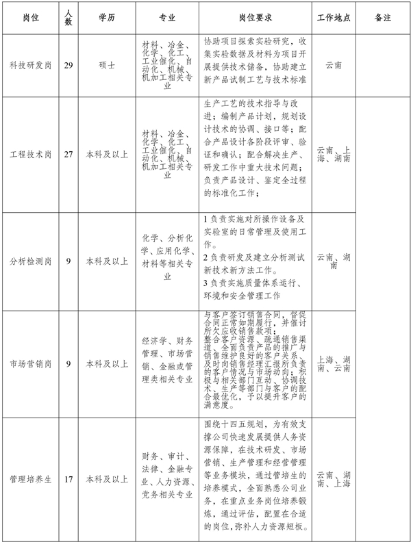 咨(zi)詢電話(hua):0871-68328827(貴(gui)金屬集(ji)團(tuan)組(zu)織人事部(bu)) 聯系人:高老(lao)師、潘老(lao)師
