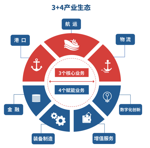 中遠海運集團服務全球貿易,經營全球網絡,以航運、港口、物流等為基礎和核心產業,以航運金融、裝備制造、增值服務、數字化創新為賦能和增值產業,全力打造“3+4”產業生態,致力于構建世界一流的全球綜合物流供應鏈服務生態。