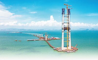 伶仃洋大橋東索塔施工現場。