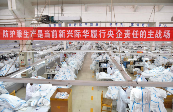 在抗擊新冠肺炎疫情中,際華股份把防護服生產作為踐行“兩個維護”的具體行動