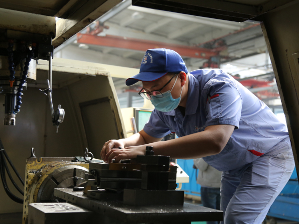 哈電集團汽輪機公司冷作分廠操作者正在加工過渡段零件,該項目是高壓集群青年突擊隊開展的華能沁北攻關任務