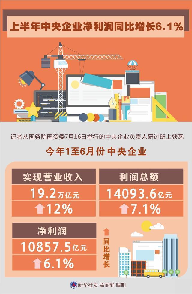 新(xin)華(hua)社北(bei)京(jing)7月(yue)16日電 記者從(cong)國(guo)務(wu)院國(guo)資委16日舉行的中央(yang)企(qi)業負責(ze)人研(yan)討班(ban)上獲悉,今年1至6月(yue)份,中央(yang)企(qi)業實現營業收入19.2萬億元、利(li)潤(run)總額14093.6億元、凈利(li)潤(run)10857.5億元,同(tong)比分別(bie)增長12%、7.1%、6.1%。