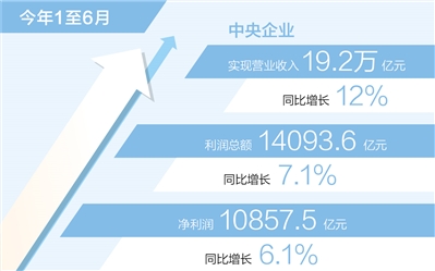 記者從國務院國資委舉行的中(zhong)央企(qi)業負(fu)責(ze)人研討(tao)班上(shang)(shang)獲悉:今(jin)年1至6月,中(zhong)央企(qi)業實現營業收入19.2萬(wan)億元(yuan)、利(li)(li)潤(run)(run)總額14093.6億元(yuan)、凈利(li)(li)潤(run)(run)10857.5億元(yuan),同比分別增長12%、7.1%、6.1%。上(shang)(shang)半年,中(zhong)央企(qi)業發展質量進一步提(ti)高,營業收入利(li)(li)潤(run)(run)率(lv)保(bao)持較(jiao)高水平(ping),資產負(fu)債(zhai)率(lv)總體保(bao)持穩定,投資貢獻持續(xu)加大,有力帶動了產業鏈上(shang)(shang)下游企(qi)業協同發展。