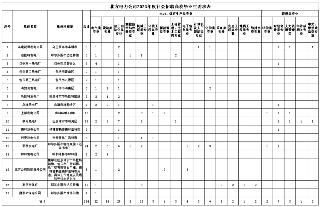 北方聯合電力(li)有限責任公(gong)司2023年(nian)度社(she)會招聘(pin)高(gao)校畢業生公(gong)告請用瀏(liu)覽器打開網址: