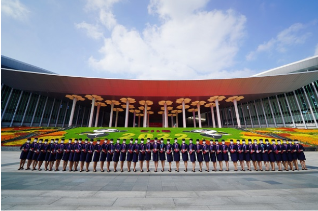 在本屆(jie)進博會上,中國(guo)東航百余名空中乘務員將再次進駐(zhu)國(guo)家會展(zhan)中心,并作為進博禮(li)儀(yi)志愿者,在場館內為八(ba)方(fang)賓客提供“精心”“舒心”“暖(nuan)心”“安(an)心”的高質量禮(li)儀(yi)服務。