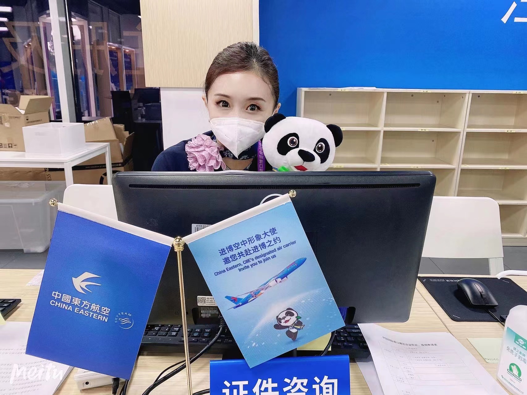 我叫俞(yu)嵐(lan),是(shi)中(zhong)(zhong)國東方航空地面服(fu)(fu)務部(bu)外(wai)航服(fu)(fu)務中(zhong)(zhong)心貴賓(bin)室(shi)班組長。今(jin)年是(shi)我連續第三年參與進博(bo)服(fu)(fu)務保(bao)障工作,在進博(bo)會注冊(ce)及證件管理中(zhong)(zhong)心工作。三年來,我和(he)(he)我的伙伴們一起服(fu)(fu)務海內外(wai)參展客商(shang),獲得了客戶的肯定,也收到(dao)了來自中(zhong)(zhong)國國際(ji)進口博(bo)覽局的感(gan)謝信(xin)。能在進博(bo)會的舞臺(tai)上代表東航展現(xian)國資央企風貌(mao),我感(gan)到(dao)特別驕傲和(he)(he)幸(xing)福(fu)。