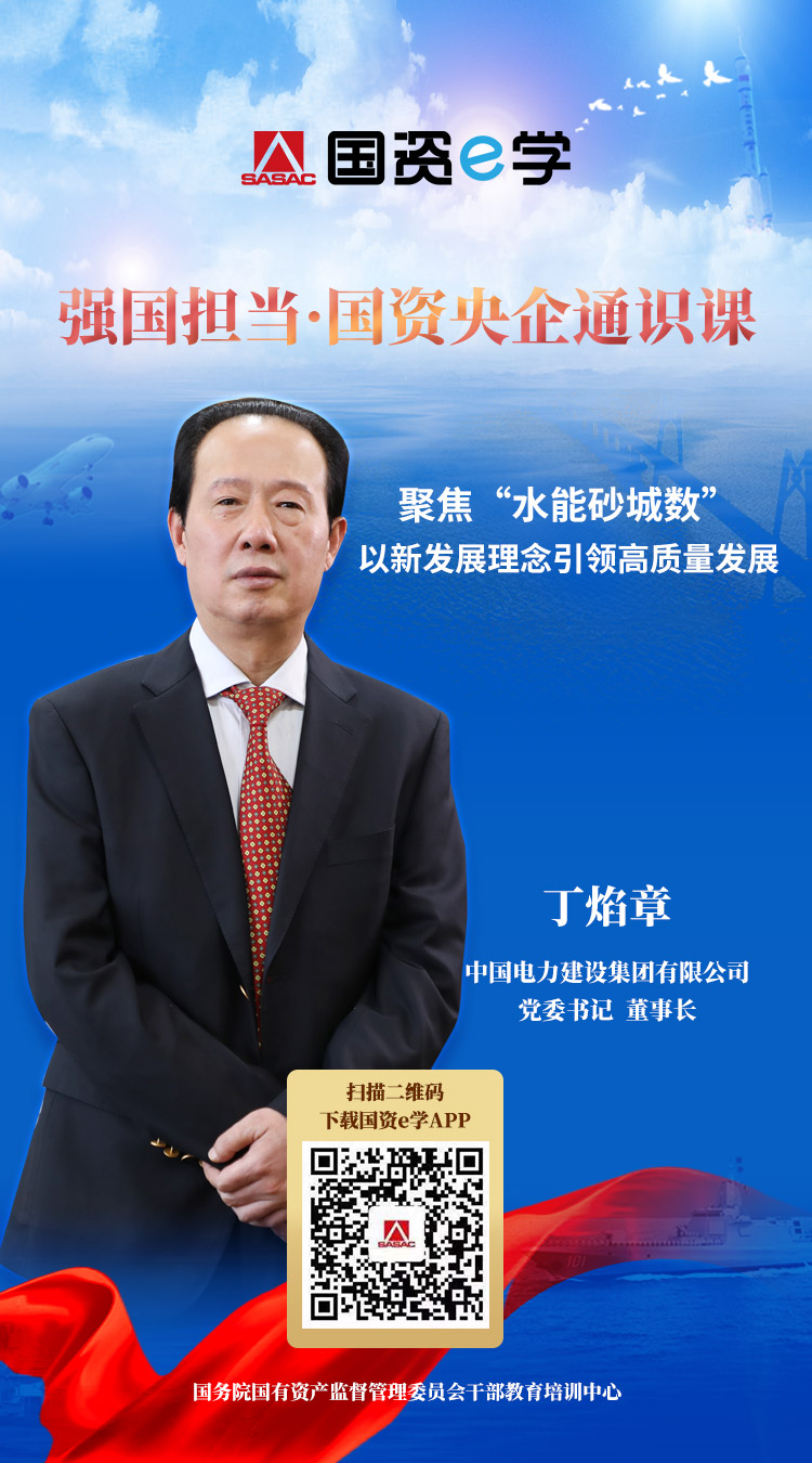 《強國擔當 國資央企通識課》之《聚焦“水能砂城數”,以新發展理念引領高質量發展》共分為五個篇章,由中國電力建設集團有限公司黨委書記、董事長丁焰章作為主講人,從服務國家戰略、推動改革發展、踐行央企擔當等方面,講述了中國電建自新中國成立以來,在黨中央、國務院國資委的正確領導下,立足產業報國,傳承紅色基因,為我國能源電力事業做出了重要貢獻,為服務國家經濟社會發展,參與全球能源治理,加快構建人類命運共同體貢獻電建方案和電建力量的生動故事。