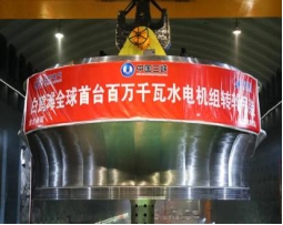 【成果簡介】 白鶴灘機組是當前世界上單機容量最大、研制難度最高、技術最先進、質量指標最高的水輪發電機組,其開發難度在世界范圍內也絕無僅有,無任何直接經驗可以借鑒。經過近十年的研發,通過大量的技術創新和資源投入,東方電機成功研制了1000MW級水輪發電機組,實現了百萬千瓦水電機組的總體設計、水力開發、電磁設計、高效全空冷技術、推力軸承技術、24kV電壓等級定子絕緣技術、轉輪動應力測試、材料研究、關鍵部件制造技術等重大關鍵技術的突破。其主要指標全面優于世界上所有已投運的巨型水電機組的性能指標,處于國際領先。這是我國高端裝備制造的重大突破,完成從“中國制造”到“中國創造”的歷史性跨越。