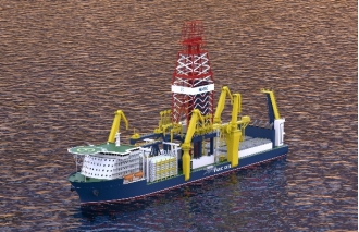 【成果簡介】 中國船舶集團第七〇八研究所開發的新一代超深水鉆井船,最大作業水深為3660米,最大鉆井深度15250米,最大可變載荷28000噸,配置2×1250短噸的雙井架鉆機和2套7閘板20kPSI防噴器組,配備DP-3閉環電網動力定位系統,與國際先進的第七代超深水鉆井船方案技術指標相當。該船在國內首次應用了桁架式雙井架與單層卷筒絞車相結合的鉆機解決方案,兼具作業效率高和便于維護保養的特點。通過對主尺度、船型、月池及改善措施等進行水動力性能優化,可適應惡劣海況作業需求。該型超深水鉆井船技術文件已通過中國船級社的審查認可,具備工程接單條件。
