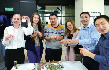 在中國春節,中方員工邀請俄方員工包餃子,為他們送“福”字。