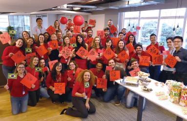 在中廣核巴西公司總部辦公區有一面照片墻,其中有一抹亮眼的紅格外引人注目。那是在中國春節期間,中廣核巴西公司中方同事策劃的一場別開生面的中國新年慶祝活動的全體人員合影。