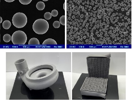 增材制造用高流動性鋁合金粉末產品開發的技術運行成本低,粒度分布窄、粉末球形度好、氧含量易控制,可連續工業化生產等優點,通過該技術生產粉末的成本降低50%以上。開發的高品質鋁合金粉末以3D打印用15-53μm AlSi10Mg為例,粉末流動性≤80s/50g,松比≥1.45g/cm3,振實密度≥1.65g/cm3,球形度≥97%,無衛星球和空心粉,即實現制備的粉末相對于市場現有粉末流動性提高>30%,松比、振實密度提高>15%,且氧含量可控制在300PPm,主要應用于在航空、航天、大型飛機、船舶、汽車、新能源等領域。并已批量供貨,建成500噸/年高流動性鋁合金粉生產示范線,粉體各項性能優異,技術成熟程度達到9級。