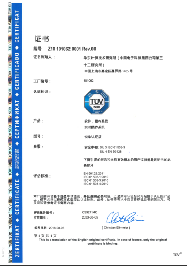 銳華高安全嵌入式實時操作系統,主要由操作系統內核、高可靠文件系統、網絡協議棧、C庫(子集)四部分組成。滿足IEC 61508:2010 功能安全完整性等級SIL/SC3 要求(通用領域)、EN 50128:2011/A2:2022 SW SIL4 要求(軌道交通)、IEC 60880:2006 要求(核電控制)和IEC 62304:2015 要求(醫療),通過了國際第三方認證公司TüV南德認證。操作系統支持PowerPC、ARMv8、ARMv7-R等處理器架構,具有良好的可移植性和可裁剪性。主要應用于航空航天、軌道交通、工業控制、核電控制、醫療等領域的安全關鍵設備和系統中。