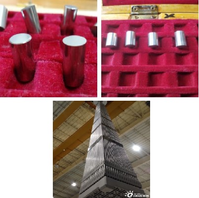 壓水堆中子源組件包括初級中子源組件和次級中子源組件,主要用于提高反應堆起動時的中子注量率水平,以使源量程核測儀器能可靠地測出中子注量率水平,從而保證反應堆安全起動。銻鈹芯塊是次級中子源燃料組件重要的材料,組件中設有多根次中子源棒,次級中子源棒由不銹鋼包殼、銻鈹源芯塊和上下端塞組成。次級中子源由多個銻鈹芯塊軸向堆積而成,置于次中子源棒內。銻鈹芯塊在反應堆內輻照后,銻吸收中子活化,銻的γ射線轟擊鈹并釋放中子,為后續循環反應堆啟動提供一個初始中子水平。目前,西材院可生產各種規格銻鈹芯塊,每年為相關單位提供核電用銻鈹芯塊1萬余塊。